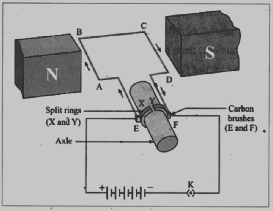 - Split Rings- These are used to rotate the coil. Split rings are also known as commutators.